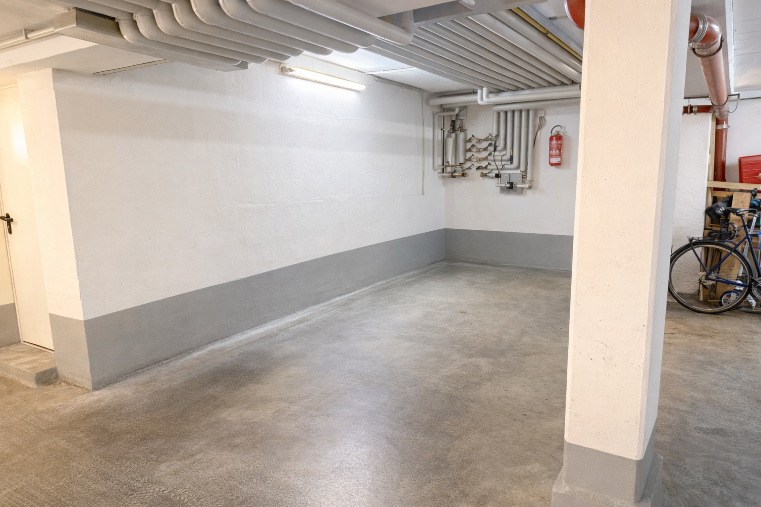 Das Kellergeschoss verfügt über einen großzügigen Kellerraum, welcher zusätzlich mit einem Waschmaschinen-/Trockneranschluss ausgestattet ist, einen Flur sowie einen direkten Zugang zum Gemeinschaftseigentum und zur Tiefgarage.