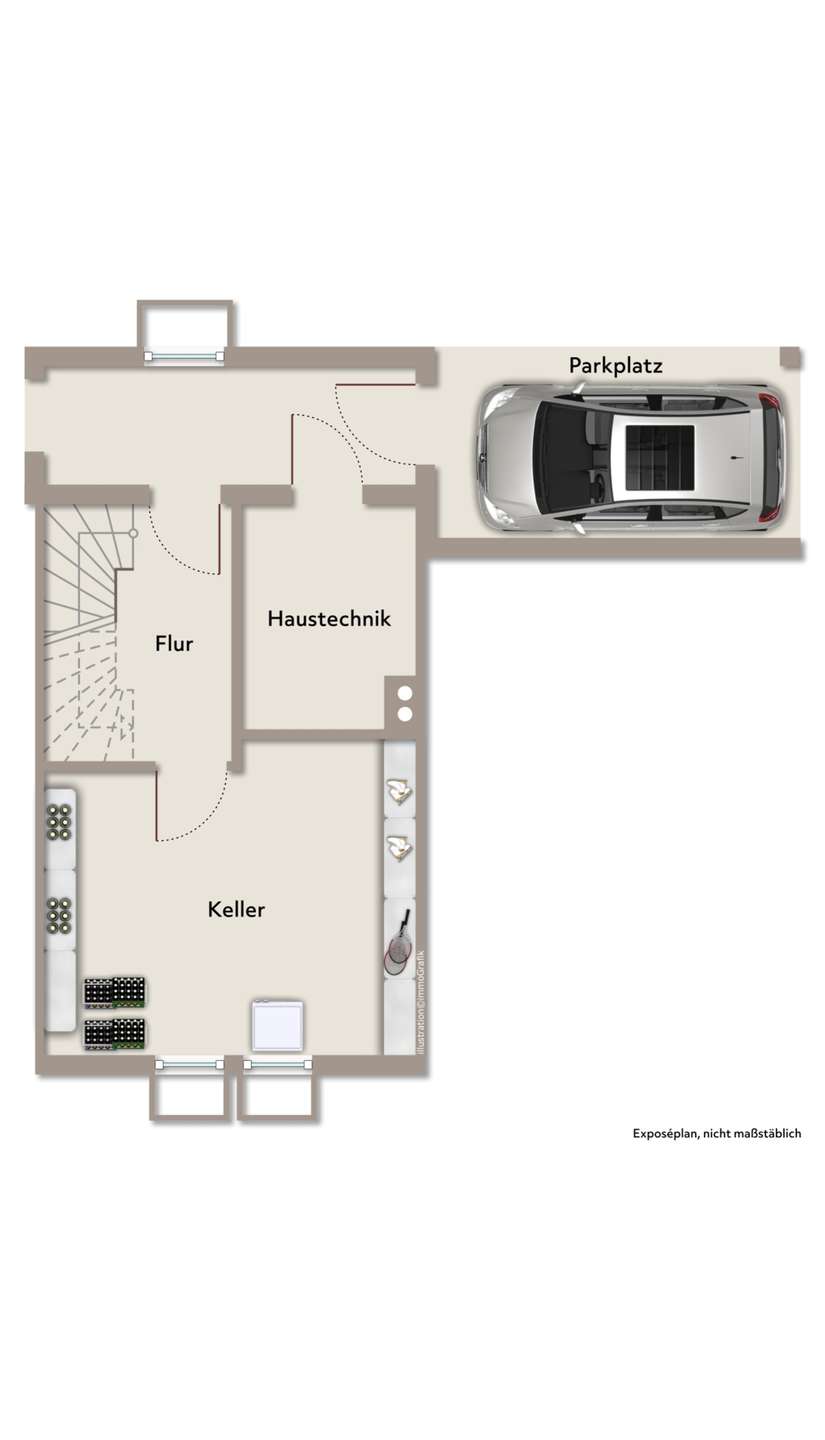 Ein Tiefgarageneinzelstellplatz ist für zusätzlich 25.000 € zu erwerben. Bei den Fenstern besteht mittelfristiger Überarbeitungsbedarf, zudem sollte mindestens eines der vier Dachflächenfenster erneuert werden. Flächen