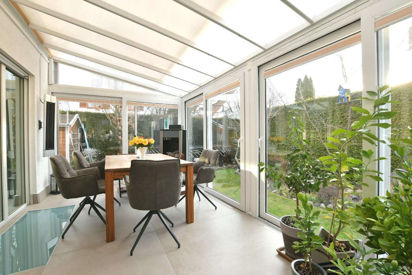 Die Ausstattung erfüllt höchste Ansprüche: Fußbodenheizung im gesamten Haus (inkl. Untergeschoss), ein künstlerisch gestalteter Kaminofen mit Sichtfenster, hochwertige Klimaanlagen in den Schlafräumen und im Wintergarten sowie eine Alarmanlage mit vier RING-Kameras und zwei Wandsafes. Die Fenster sind verspiegelt und mit elektrischen Rollläden ausgestattet. Weiße Vollholztüren der Marke Südholz sowie maßgefertigte Garderoben- und Badezimmermöbel unterstreichen den gehobenen Wohnstil.